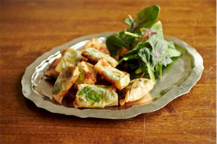 This recipe is super simple. All you do is wrap the prepped salmon in spring roll wrappers and deep-fry. The spicy, refreshing aroma of basil adds a nice twist.