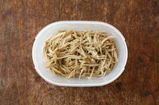 【1】Shave the burdock root into thin slices. Soak in water for 2 minutes and drain in a colander.