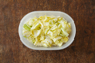 【2】Place the cabbage and shio koji in a bowl and mix together. Let set for 15 minutes.