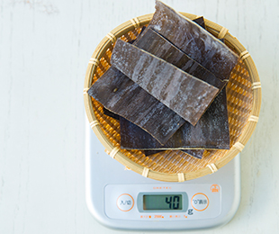 To ensure the kombu-sui tastes good, it’s important to use the right amount of kombu for the amount of water. Until you internalize the process, remember how much kombu is called for and weigh it.