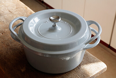 Heat and time are the two inputs that give a stew its flavor. Once you’ve put it on the stove, there’s nothing further to do. It will simmer away on its own until it tastes delicious. The best type of cookware to use for stew is a heavy pot that retains heat well and slowly but steadily heats the ingredients. Besides gradually drawing out the umami, a heavy pot also has the advantage of staying hot after you turn off the element, letting you cook with the residual heat.