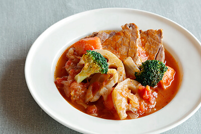 <Tomato stew with pork and chunky vegetables>