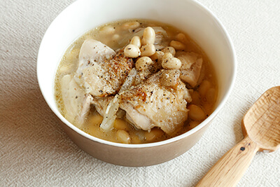 <Shio koji chicken and soybean stew>