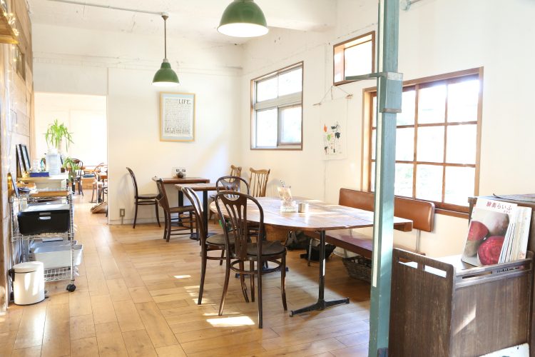 The café and studio are filled with natural light, creating a cozy space with a nostalgic feel
