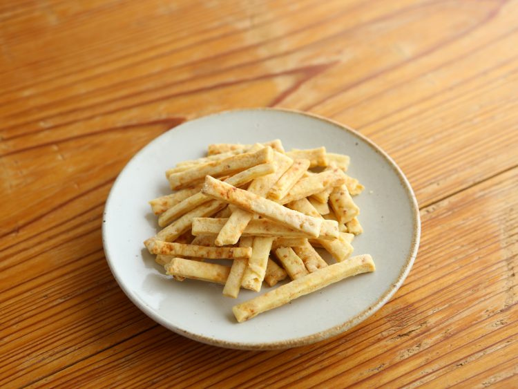 “Both my kids and I dislike the taste of saké lees. So when I started developing the menu for the café, I would add saké lees to a dish and give it to them to taste. They would always complain: ‘You put saké lees in again!’ But they’ll munch down on these saké lees crackers without a second thought.”