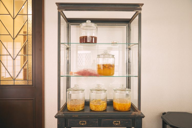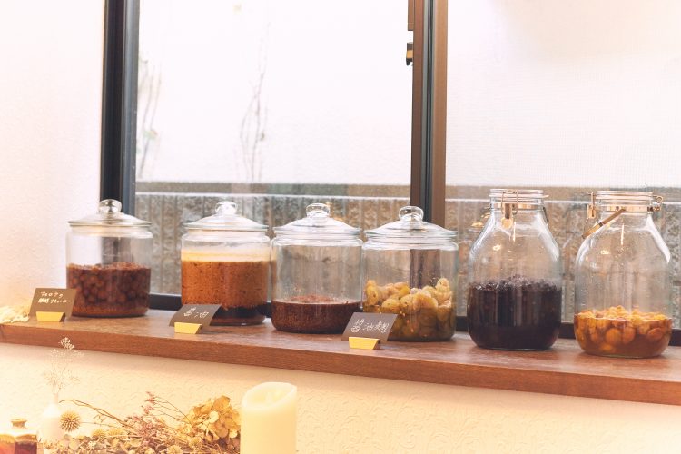 As you open the entrance to the Gotenyama Club, you are greeted by the faintly sweet aroma of koji. To your right, large jars of soy sauce koji, salted koji, and rice miso line the windowsill. On the carpeted tatami mat in the Japanese-style room, a polished table is adorned with cute dried flowers. Despite being first-time visitors, the space feels somehow familiar, gently easing away fatigue and tension with its warm ambiance.