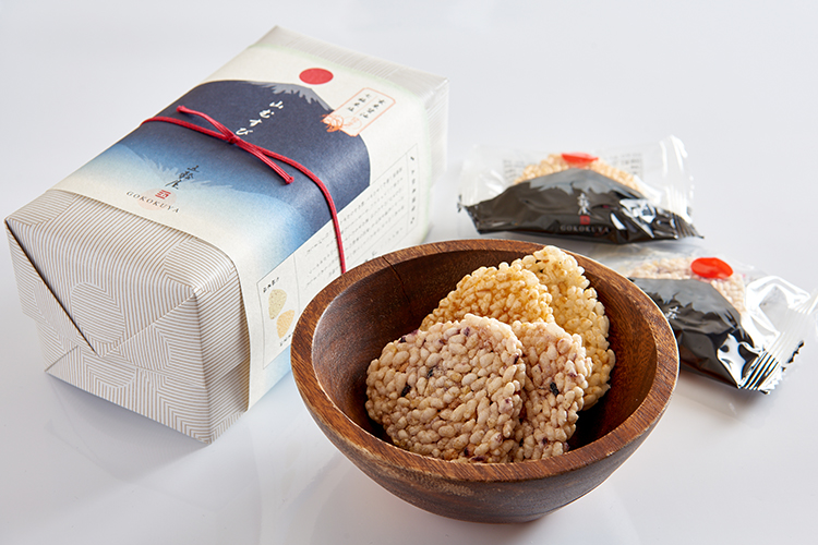 Another leading Gokokuya product is Yama Musubi, five-grain senbei rice crackers. Made without any binders, the product’s crispy texture is produced by keeping the rice grains intact. The mountain-shaped design evokes the bounty of nature, and the rich full flavor, made with fermented ingredients, also sets these crackers apart.