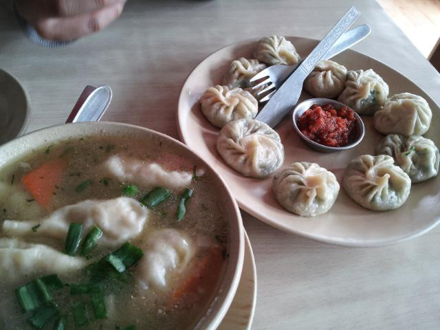 Mokthuk (left) and vegetable momo, two dishes that Tomofumi came across in Ladakh