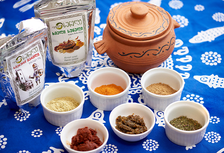 The two packages behind at the left are svaneti salt and khmeli suneli, a mixture of spices and herbs.