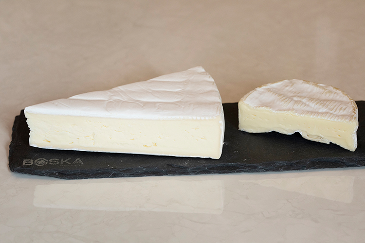 Brie looks very white and has a well-defined taste. Its aroma is not so strong. Camembert de Normandie AOC, on the other hand, has an unmistakable aroma, and its taste is also complex. Despite both being white-rind cheeses, the taste impressions are completely different.