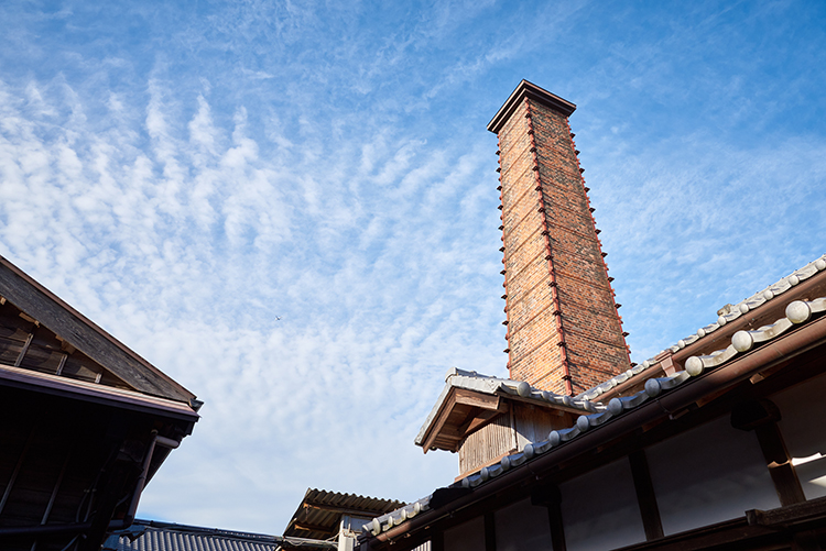 Beyond the Preservation District for Important Groups of Historic Buildings in Sawara — a riverside town in the city of Katori, Chiba, that once flourished as a river transportation hub — lies the Baba Honten Shuzo brewery, easily spotted by its red brick chimney.。