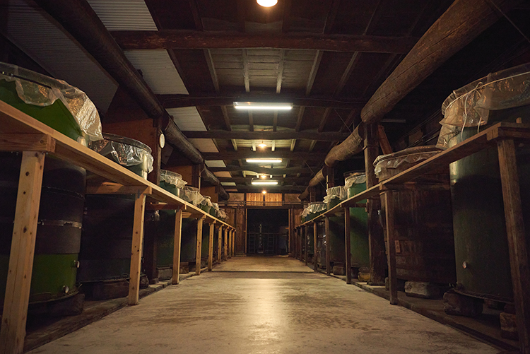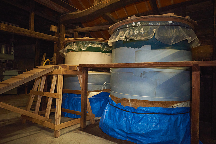 Let’s trace the steps in producing mirin, sticking to time-honored methods. Baba Honten Shuzo uses traditional Japanese koshiki rice steaming vats and prepares the mirin in a storehouse said to have been erected in the Tempo era (1830 to 1844).
