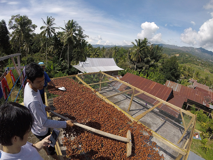 Back in Japan, Fukumura wanted to learn more about cacao and chocolate, so he decided to take a job at a well-known producer of craft chocolate. Through his work, he learned the process of turning high-quality beans sourced from around the world into chocolate. He then went independent and founded Whosecacao. Wanting to get involved in cultivating quality beans, he made the decision to live on an Indonesian farm and work alongside the producers so he could engage directly with the cacao.