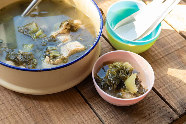 “The distinct flavor of the pickled vegetables instantly gives the soup that authentic Thai taste. Adding glass noodles or tofu is also delicious.”