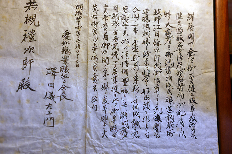 A letter from Sawada Gizaemon, the brewery’s founder, addressed to Wakatsuki Reijiro, the Minister of Finance at the time. The letter reports that, under the instructions of engineer Eda Kamajiro, the method of adding lactic acid bacteria to shubo has shown promising results.