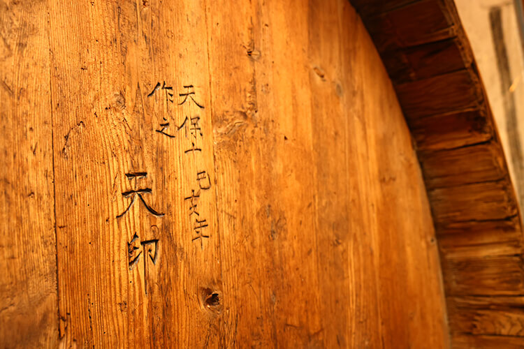The barrel maker’s name and year the vat was made are carved into the bottom