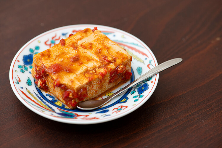 The furu Matsushima serves is lacto-fermented with fermented chili peppers. He learned the local way to make it in the southwest region of China and has continued to make it without fail for more than ten years, while adding his own twists to the recipe.