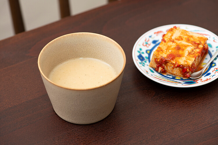 Only three ingredients: onion, chicken broth, and furu. And yet this simple potage is surprisingly creamy and bursting with rich umami. The thick yet light-tasting potage and the tangy spiciness of the furu is the perfect combo.