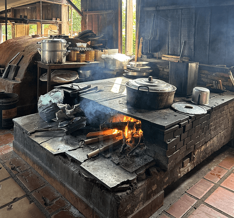Every morning, a fire is started with bamboo and wood for boiling water and making soap