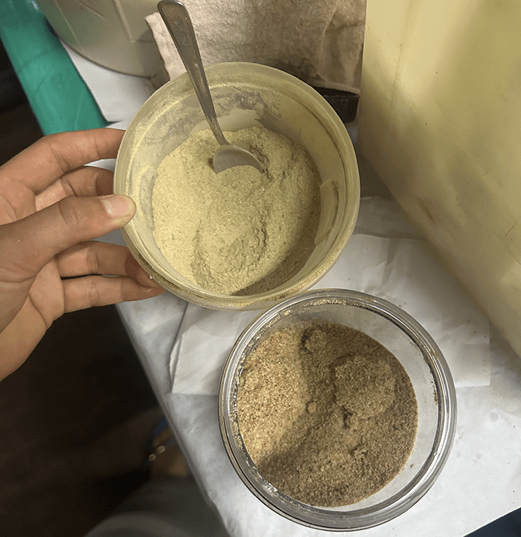 The koji mold necessary for fermentation begins with making tane koji, or seed koji. Koji is usually cultivated in the West in specialized environments with temperature and humidity controls. Comunidade Yuba, however, does not have such facilities, so it produces koji in keeping with Brazil’s uniquely hot and humid climate. To account for the local climate, Comunidade Yuba employs a two-stage process to make koji.