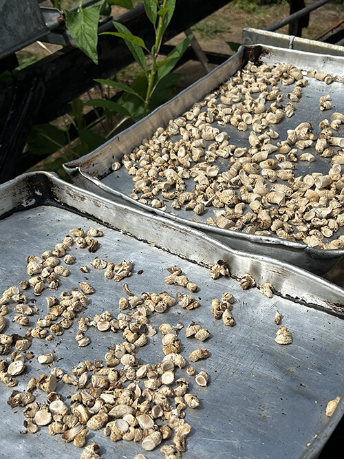 Shiitake grown on mango tree logs are used in cooking and are dried and made into dashi powder