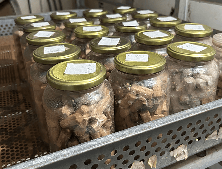 Shiitake spores are cultivated on small wood chips