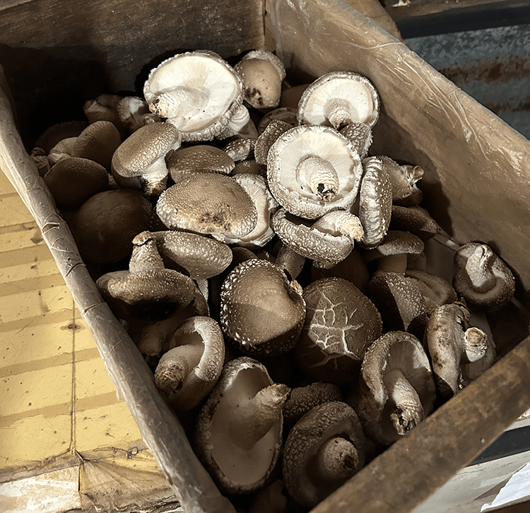 Harvested shiitake waiting to be sold