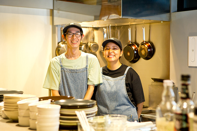 Cozy Cafe & Bar beyond is a relaxed, homelike café that prides itself on dishes that feature homemade koji malt seasonings. The café, which opened in September 2023, is just a short walk from the JR Ibaraki train station in the lush, green Hokusetsu area, easily accessible from Osaka and Kyoto. Its nutritionally balanced, body-nourishing meals appeal to a wide range of ages, and the number of repeat customers is steadily growing. Wanting to know the secret to its popularity, we spoke with the couple running the café, Kikugawa Takeru and Ayaka.