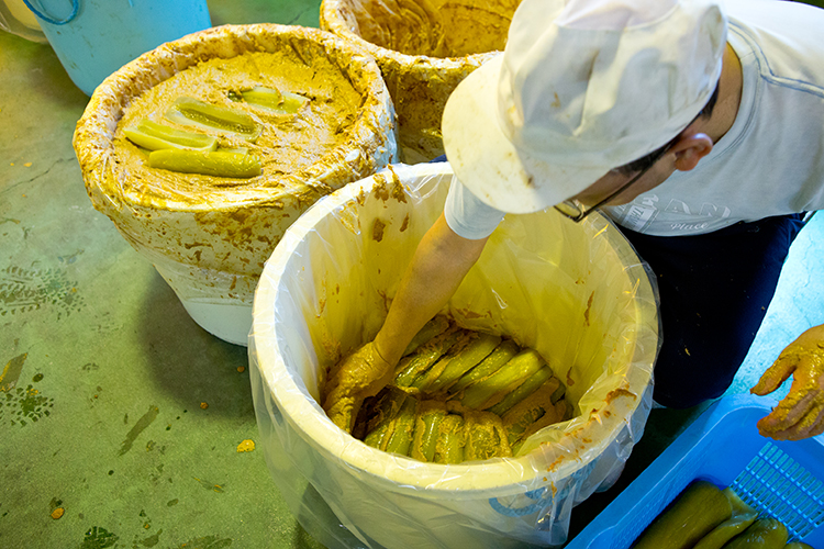 5. Final pickling: Adds the final taste to the Nara-zuke (fresh saké lees is used)