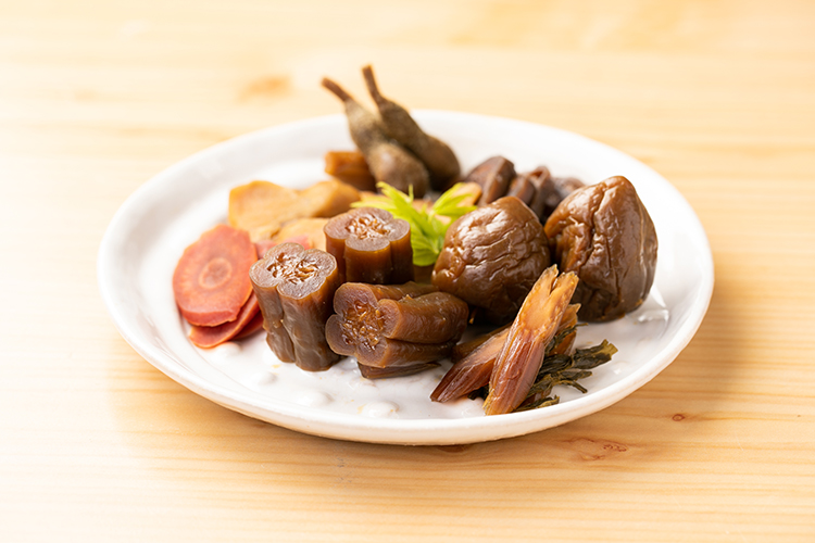 “At Mori Naraduketen, we use only domestic vegetables and fruits, natural salt from Ako in Hyogo Prefecture, and saké lees for our Nara-zuke. We continue to follow traditional production methods, adding absolutely no mirin [rice wine] lees, sugar, or sweeteners. Saké lees are the residue left after pressing the mash during saké production. Rather than letting the saké lees go to waste, we upcycle it by repeatedly pickling and aging various vegetables in the same saké lees. Nara-zuke fits perfectly with today’s era of sustainability. I truly admire our ancestors who developed this method in an age when such concepts didn’t even exist.”