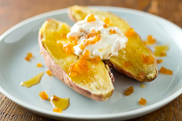 Mori’s latest creation is Baked Sweet Potato with Nara-zuke Mascarpone. Spoon some mascarpone on a baked sweet potato and top with chopped Nara-zuke and you’re done. Add maple syrup if you like. The sweetness of the potato, the richness of the mascarpone, and the Nara-zuke’s saltiness and umami. When you factor in the rich aroma, the deliciousness is endless. The key is using mascarpone instead of cream cheese.