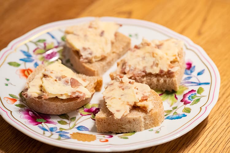 Naoya recommends topping hearty, chewy rye bread with lots of anchovy butter.