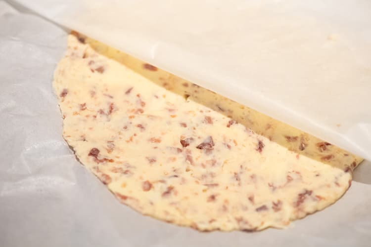 The secret to Italian-style deliciousness is sparseness. Sandwich the topping ingredients between two baking sheets, flatten until quite thin, and then chill until firm.