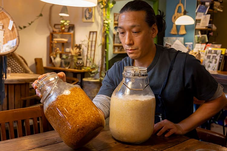 Café Cocohane is run by Nagatani and his partner, Kibe, who together handle both the cooking and serving. Since the food is prepared to order, it takes a little time. Still, many people travel long distances to enjoy delicious fermented and vegetarian dishes at reasonable prices.