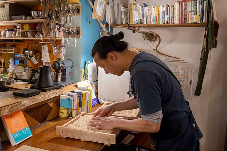 Besides operating Café Cocohane, Nagatani is also involved in miso-making workshops and working as a yoga instructor. He spoke about his future outlook, even as he spends his days busily tending to his vegetable and rice crops in between café business hours.