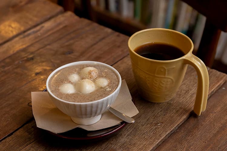 The café menu includes pound cake and cinnamon rolls, plus unusual treats like zenzai red bean soup made with finger millet, a grain commonly used in India and Nepal. These items pair perfectly with the coffee brewed with house-roasted fair trade coffee beans.